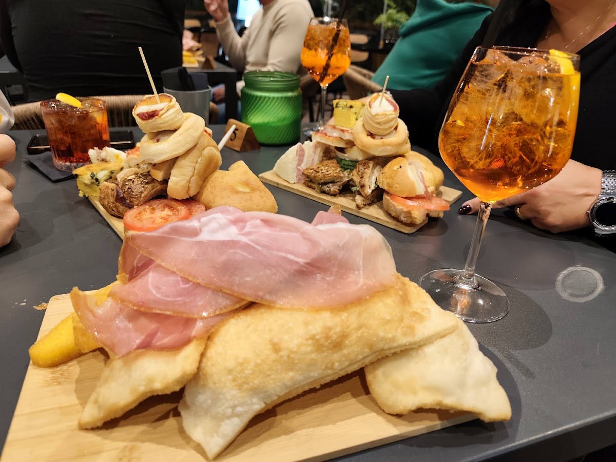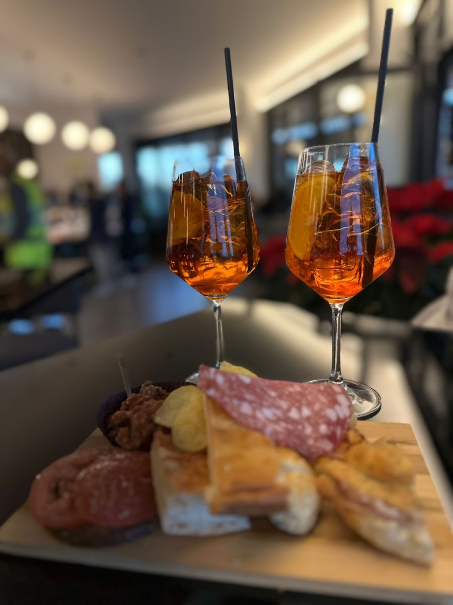 Another pastry that deserves attention is the Choux. Light, airy, and delicately sweet, it pairs beautifully with coffee or even a glass of wine later in the day. Speaking of wine, La Deliziosa Club also offers a relaxed spot to unwind in the afternoon or evening. Ordering the Aperol Tagliere is a great way to experience the café’s social side. Served alongside a refreshing Aperol, the platter invites you to linger at the table while chatting with friends or colleagues.